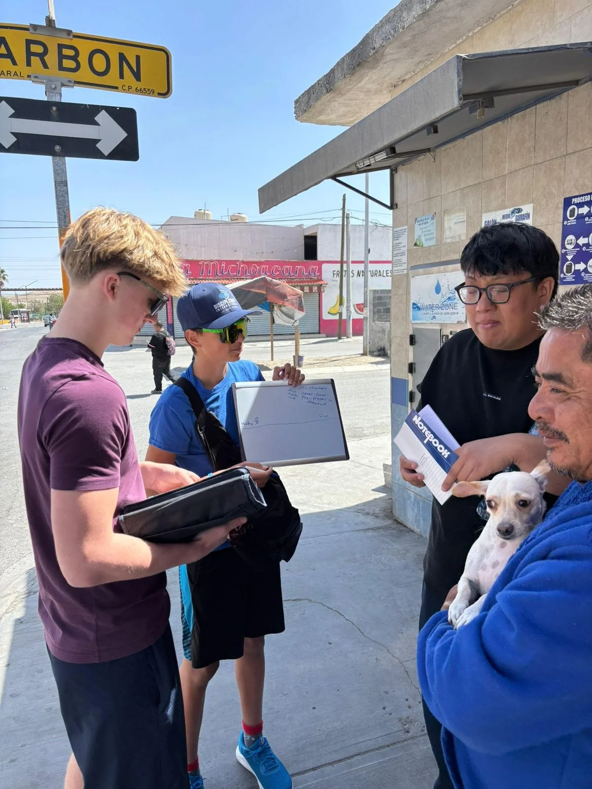 Before the trip even began we saw God doing some amazing things through divine appointments. One of our board members met a young man in the lobby of his church in downtown Vancouver and began to talk to him. His name is Diego and he grew up in Asia but had spent time in Mexico. He was planning to go to Mexico, seeking what God had for him to do next. Our board member got in touch with me and I got in touch with our Director in Mexico, Valdemar. Valdemar was able to connect him with a school that ministers to the very people group Diego was praying about working with. Since our team was going to be in Monterrey we invited Diego to join us for door to door evangelism and learn how to share his faith using the bridge. He was currently using his testimony as an evangelism tool and we were able to equip him with other tools. Praise God!!