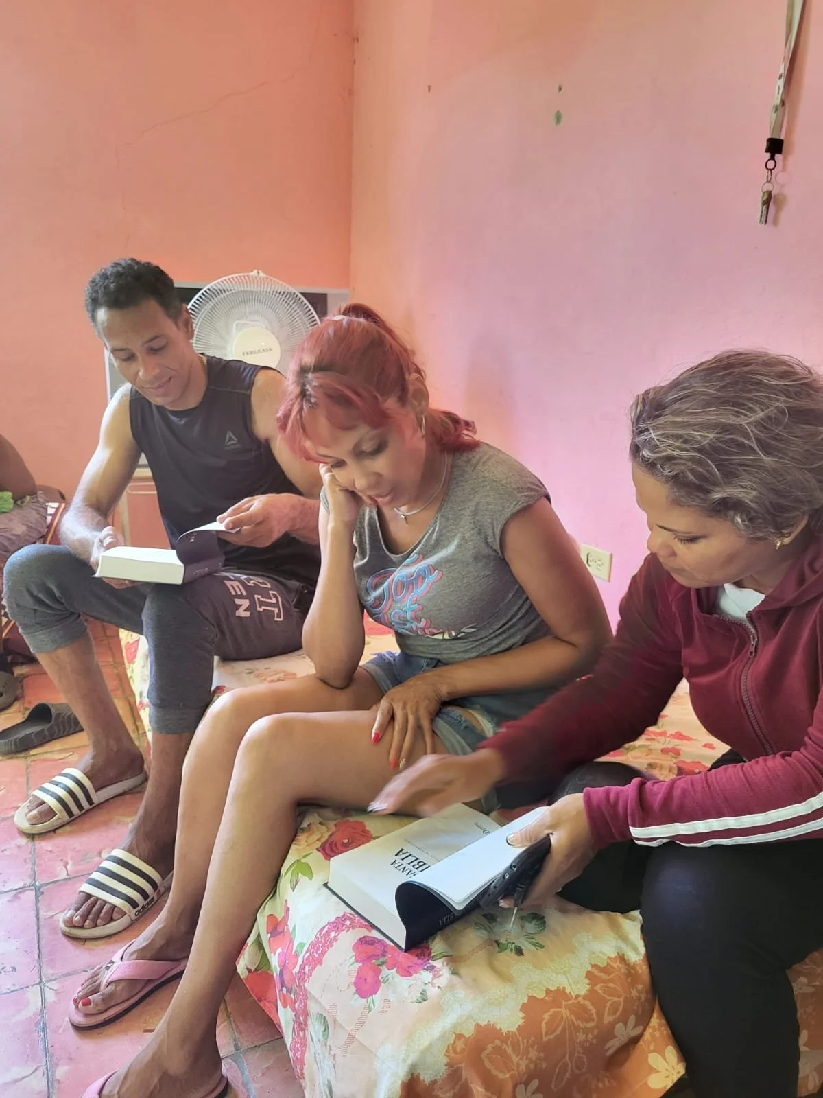 Teaching a couple to read the Bible after sharing the gospel in their home